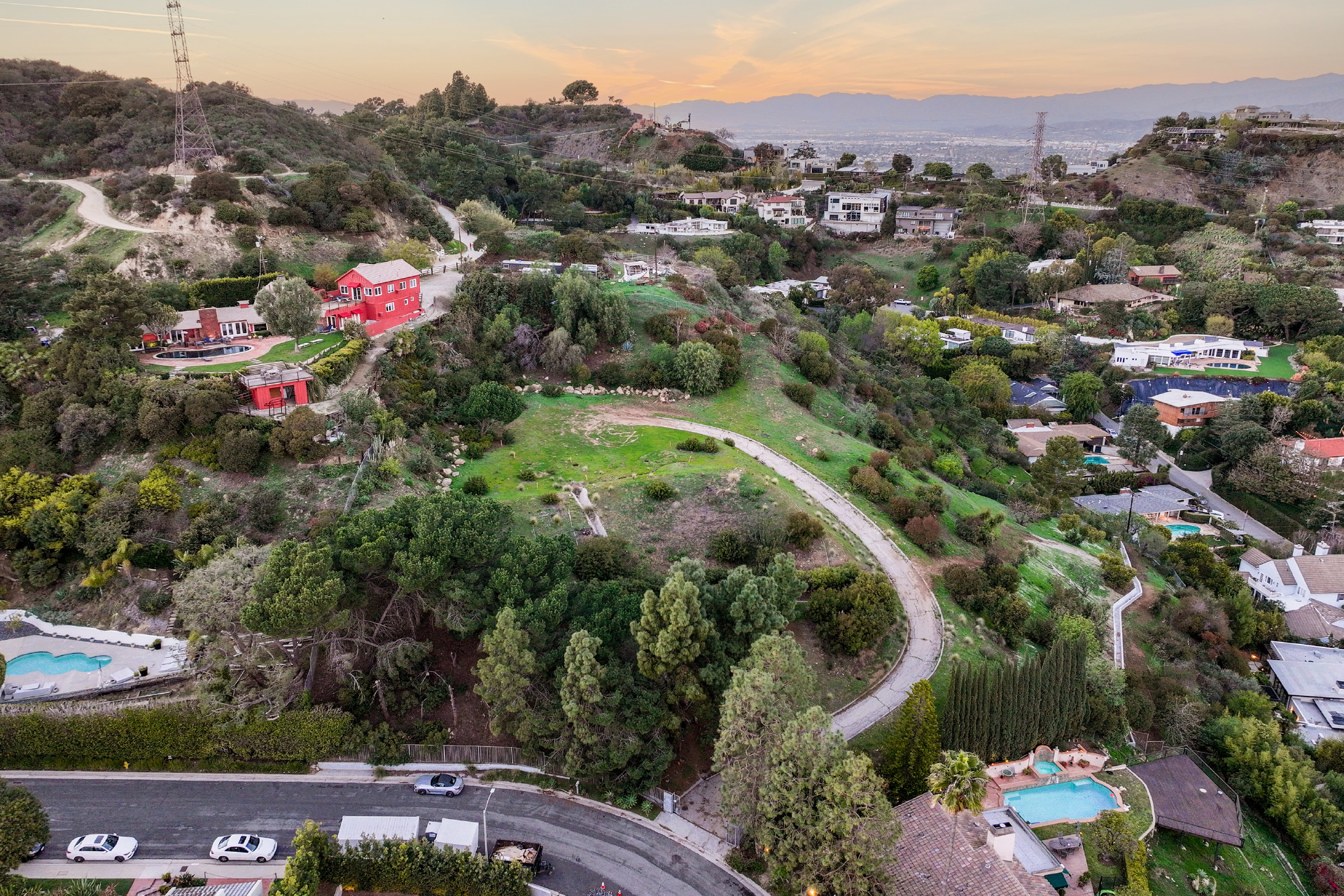 This magnificent property incorporates over 2 acres of land, featuring a graceful approach leading up to a superb flat area with unrivaled, endless views stretching to the Griffith Park Observatory, Hollywood sign and downtown. Located on a private and quiet cul-de-sac mere minutes from everything at the heart of the city, in a secluded setting that feels a world away, and above it all. Renderings shown include plans by architect Noah Walker. All plans, including landscape plans by Patricia Benner, design development package by Vanessa Alexander, and extensive engineering and feasibility studies, can be included in sale. Designs include a 7,000+ square foot house with pickle ball court and ample room for guest house. Property has private access to Runyon Canyon.